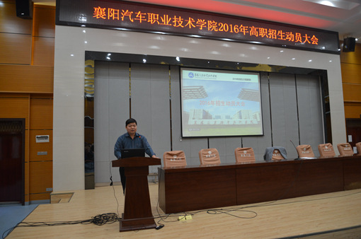 (通讯员:孙旭阳) 4月14日下午,我院召开襄阳汽车职业技术学院2016年招生动员大会。学院党委书记许云、院长宋清龙、纪委书记郑建、副院长张建成、王达文,程传红、院领导熊良猛、吴仲平出席本次大会。会议由副院长程传红同志主持。