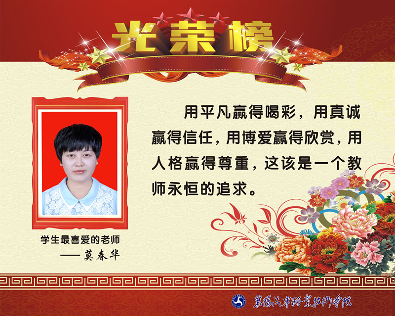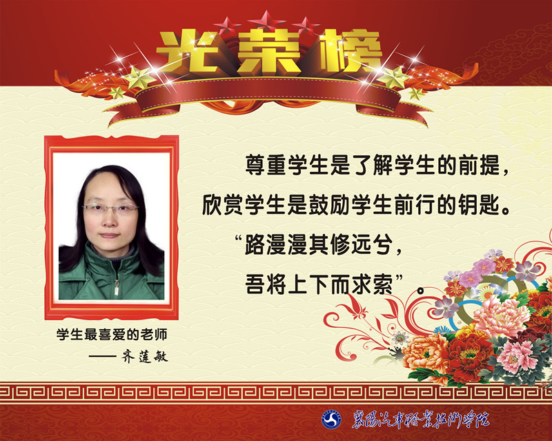 2015学年度襄阳市“学生最喜爱老师”光荣榜