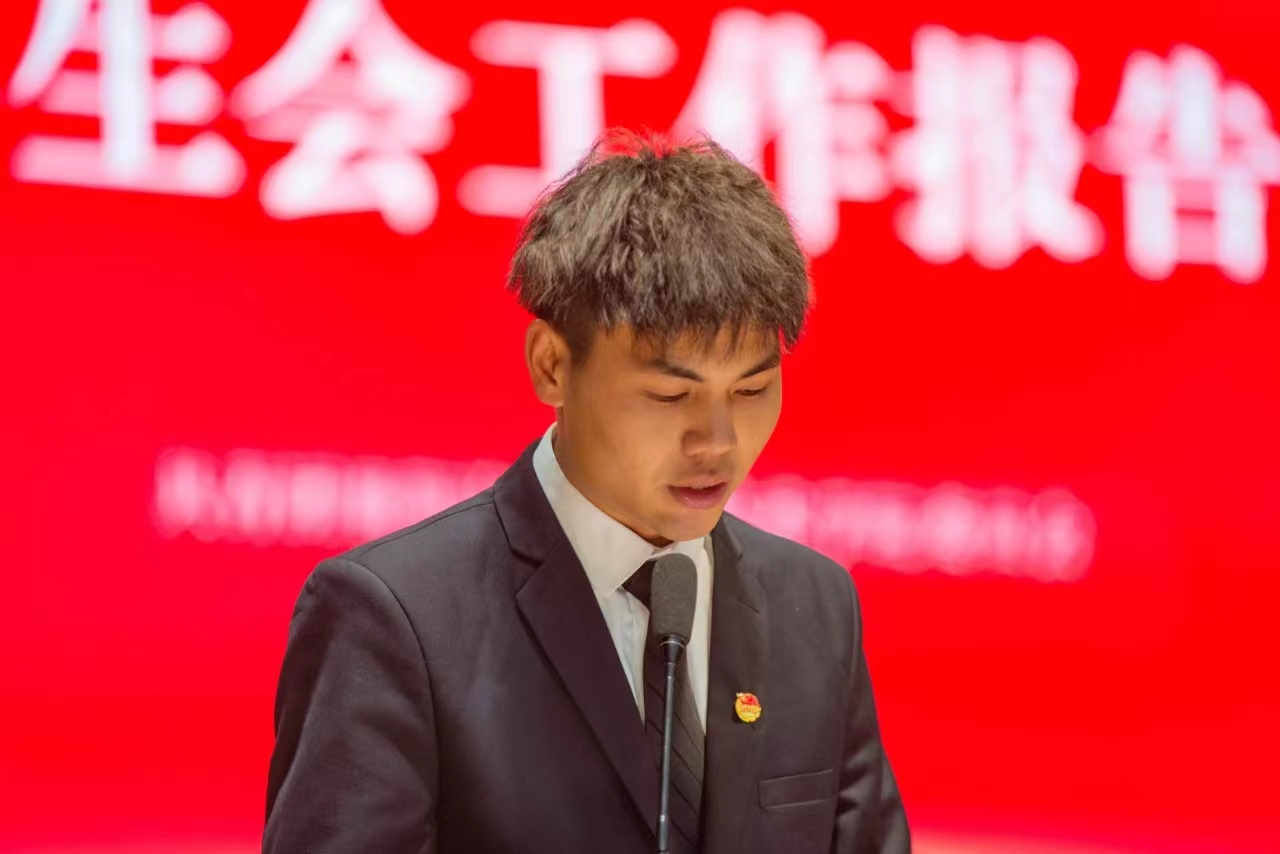 随后,校学生会主席团成员秦林军代表第五届校学生会向大会作了题为《学习习近平新时代中国特色社会主义思想,展现新时代中国青年的使命担当》的工作报告。报告从思想引领、文体活动、权益服务、组织建设等方面对过去一年的工作情况进行梳理,工作报告得到了参会代表的充分认可,在大会上各位参会代表举手表决通过。