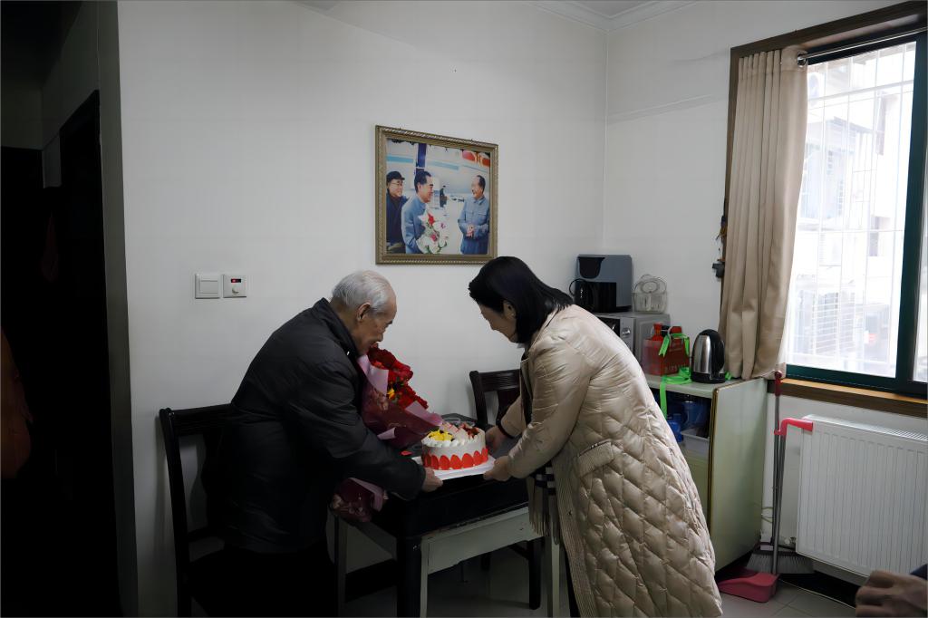 在离休干部唐南耕家中,陈剑看到老同志精神矍铄、身体健康,非常高兴,高度赞扬唐南耕同志为襄阳的教育事业做出的贡献,是我们的宝贵财富,并祝福他健康长寿、生活幸福。当天正值唐南耕老同志102岁生日,陈剑送上生日祝福和慰问金,唐南耕同志感谢党和政府的关怀,感谢学校的关心。