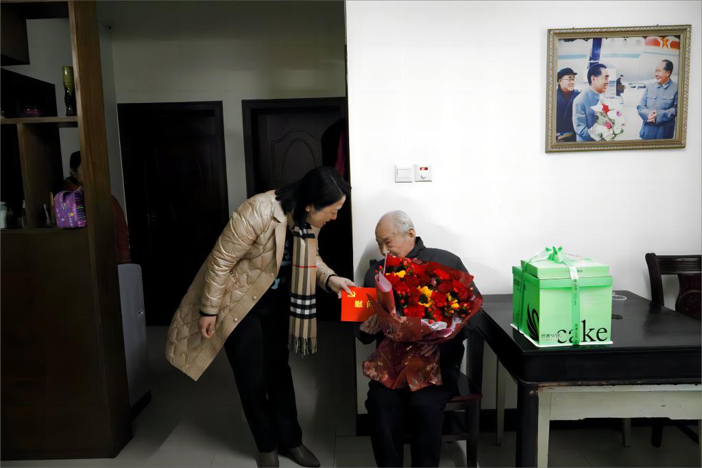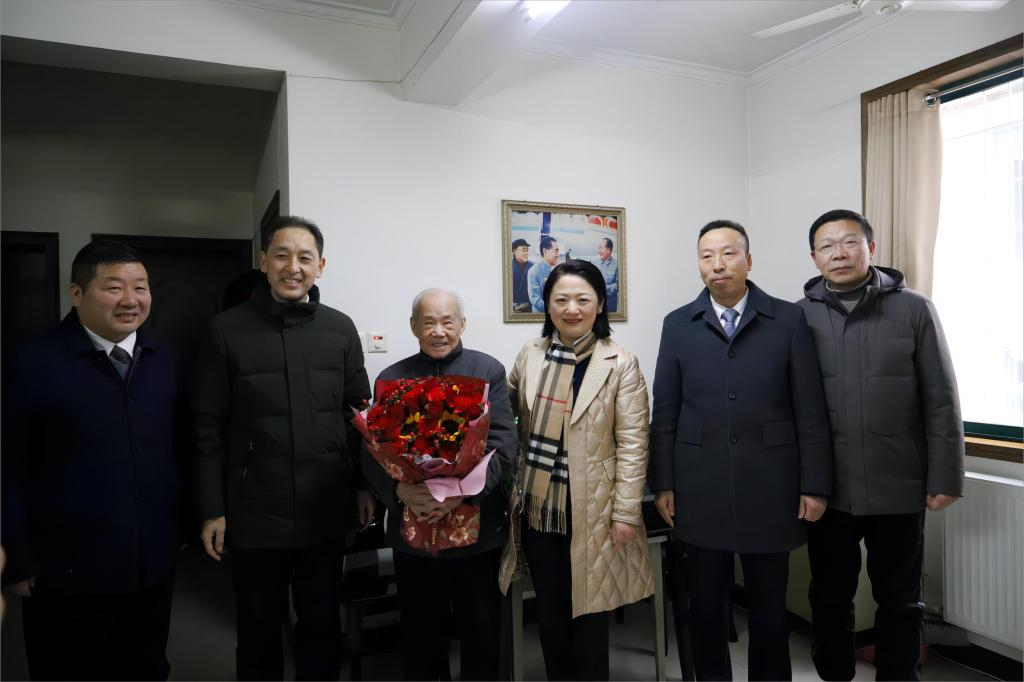 2月6日下午,在新春佳节即将到来之际,市委常委、宣传部部长陈剑,市教育局党组书记、局长、市政府教育督导室主任付拥军一行在襄阳汽车职业技术学院党委书记余荣宝、党委副书记丁波的陪同下,带着上级党组织对老干部的关怀和温暖,走访慰问了我校102岁高龄的离休干部唐南耕。