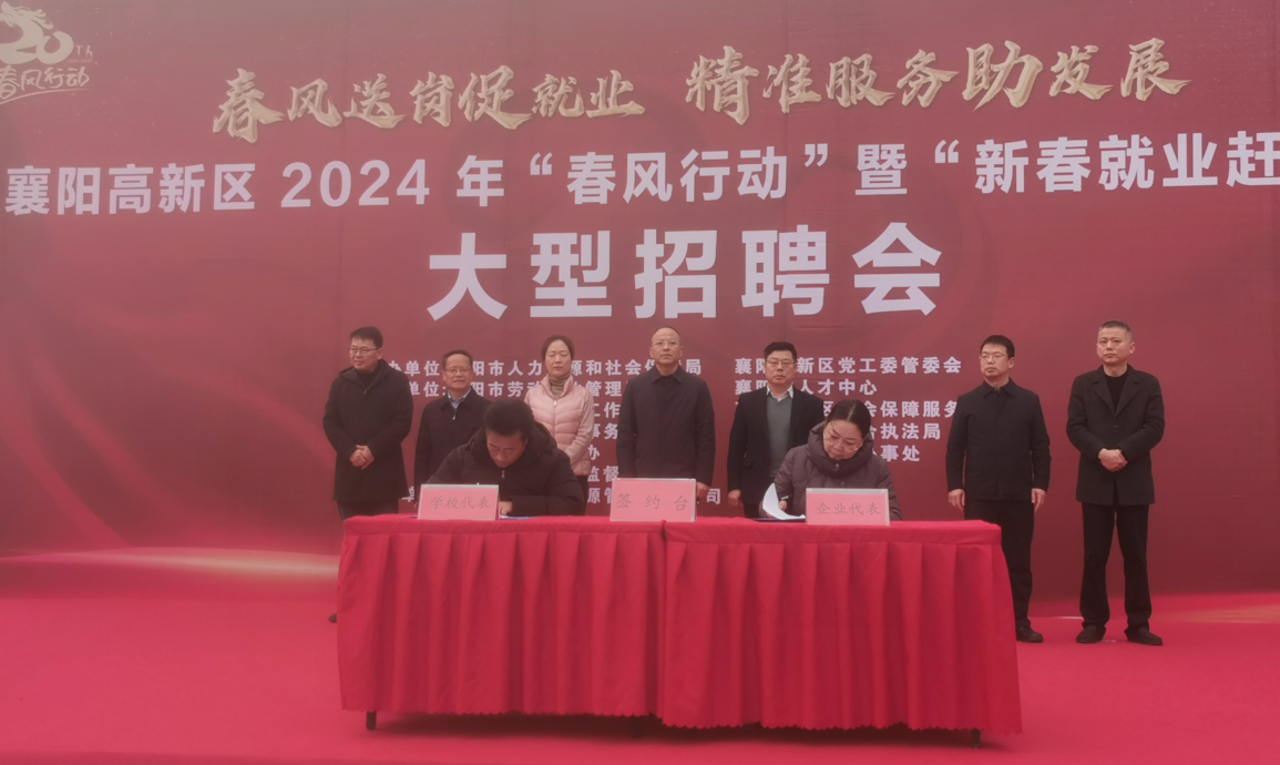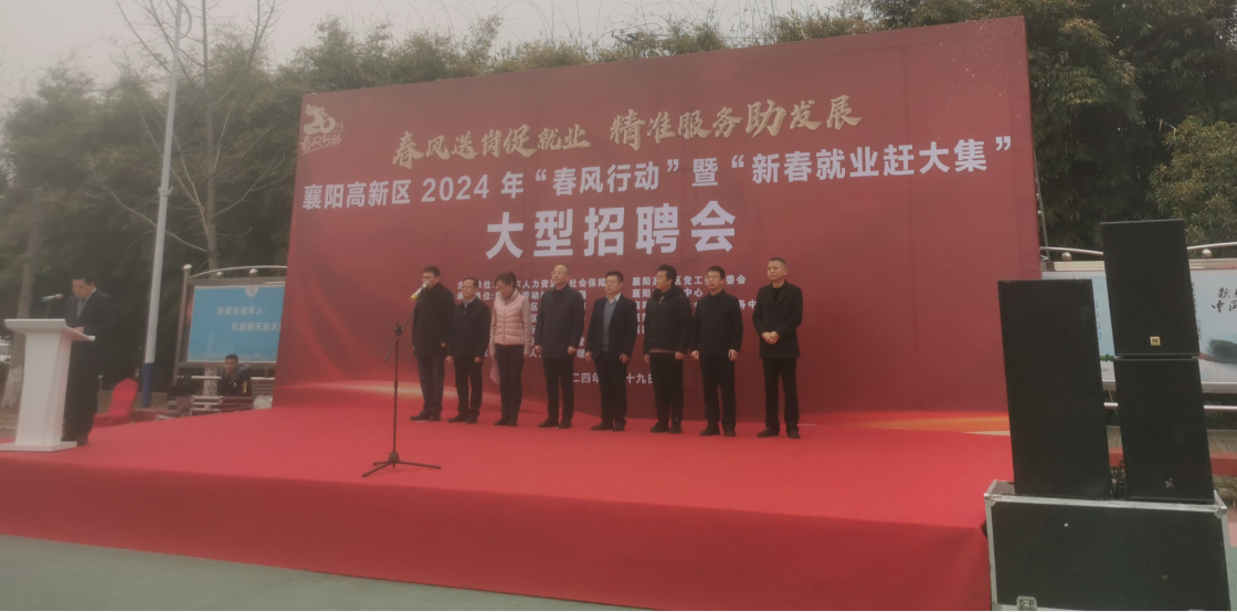 2月19日,由襄阳市人力资源和社会保障局、襄阳高新区党工委管委会主办的襄阳高新区2024年“春风行动”暨“新春就业赶大集”大型招聘会举行启动仪式,学校副校长包科杰、产学研工作处处长王卡明受邀参会。