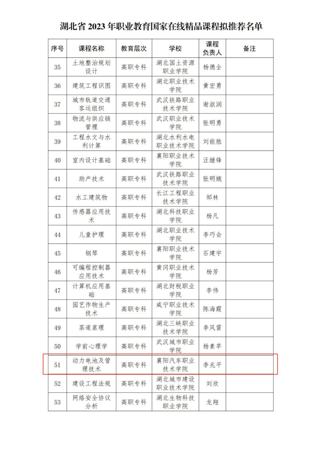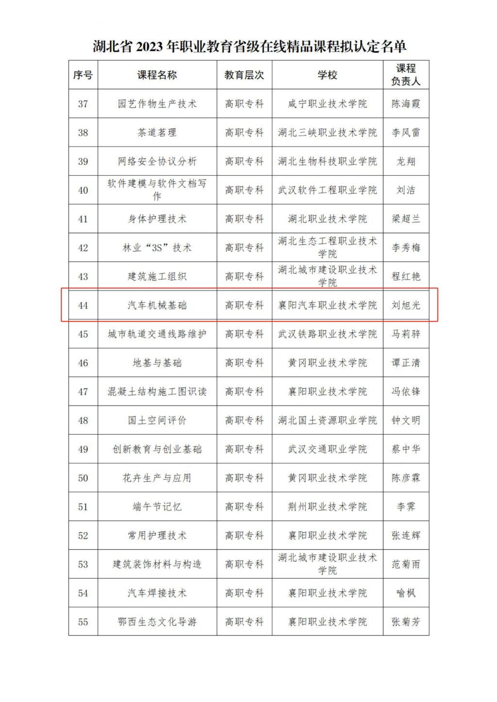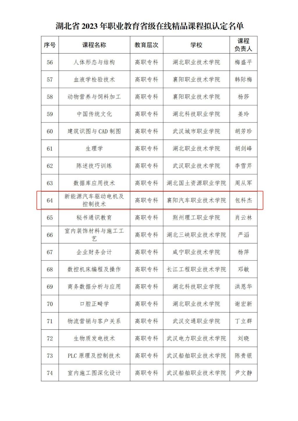3月12日,省教育厅发布了《关于湖北省2023年职业教育省级在线精品课程拟认定名单和国家在线精品课程拟推荐名单的公示》,我校《动力电池及管理技术》《汽车机械基础》《新能源汽车驱动电机及控制技术》三门课程被认定为2023年职业教育省级在线精品课程,其中《动力电池及管理技术》被推荐为国家在线精品课程,实现了我校“双高”建设以来课程建设项目在国家级层面的新突破。