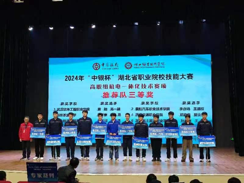 3月15日,由湖北省教育厅主办、湖北省教育科学研究院承办的2024年“中银杯”湖北省职业院校技能大赛(高职组)机电一体化技术赛项在湖北职业技术学院圆满闭赛。智能制造学院李亦鸣、王德权两名学生从全省160名选手中脱颖而出,获得三等奖的好成绩。
