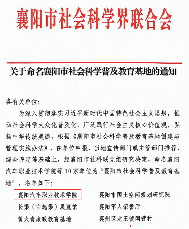 近日,襄阳市社科联公布了2024年新晋社会科学普及教育基地名单,我校位列其中。