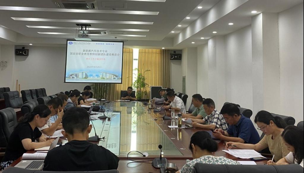 6月25日,新能源汽车技术专业国家级职业教育教师创新团队(以下简称创新团队)在图书馆435召开团队建设推进会。学校校长程传红、党委副书记丁波、副校长包科杰、人事处、教务处、产学研、院办、宣传部、财务处、信息中心、团委、就业创业指导中心等职能部门负责人、创新团队全体成员及承担相关任务的教师参加了会议,会议由程传红主持。