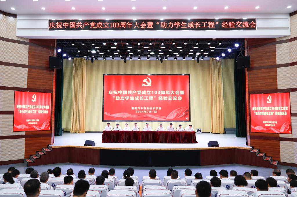 传承襄汽精神,共创襄汽荣耀。为庆祝中国共产党103周年华诞,讴歌党的光辉历程,激励全校党员不忘初心、牢记使命,动员全体师生坚定信心、团结奋斗,以高质量党建引领学校高质量发展。7月1日,我校隆重举行庆祝中国共产党成立103周年暨助力学生成长工程经验交流会。学校领导班子、全体党员、副高级及以上职称教师,学生党员参加,大会由校长程传红主持。