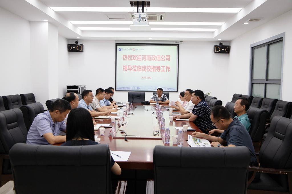 7月2日下午,河南政信公司董事长吕应勤一行来我校进行合作交流。襄阳市教育局副局长杨松、校长程传红、副校长管用才、纪委书记李剑及相关部门负责人参加交流活动。