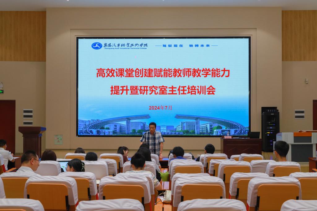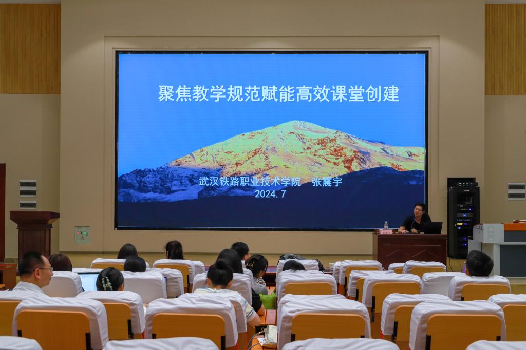 为深化课堂教育教学改革,进一步提高教师业务水平和教学能力,聚焦“数智”赋能教学设计,助力高效课堂创新,7月5日上午,我校在6号楼思政研修基地举办高效课堂创建赋能教师教学能力提升暨研究室主任专题培训。培训会由学校副校长包科杰主持,特邀武汉铁路职业技术学院张震宇副教授担任主讲嘉宾,我校各教学单位副院长(主任)、研究室主任、教学团队等参加培训会。