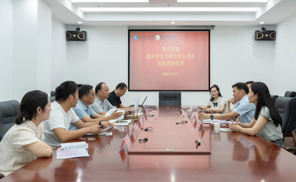 9月3日上午,襄阳市史志研究中心主任李晓波一行到我校调研交流工作。校长程传红主持召开座谈会,纪委书记李剑、部分处室负责人参加,就双方共同开展薪火“襄”传活动进行座谈交流。