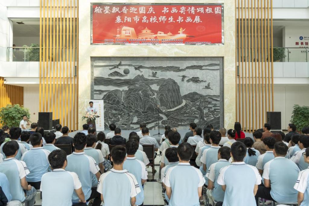 为深入学习贯彻党的二十届三中全会精神和习近平文化思想,在全国上下喜迎新中国成立75周年之际,9月27日,由襄阳市文联、襄阳市书协主办,襄阳汽车职业技术学院承办,主题为“翰墨飘香迎国庆,书画寄情颂祖国”的襄阳市高校师生书画展在襄阳汽车职业技术学院举行。