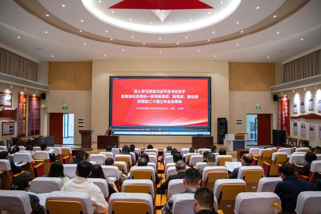随后,全体参训学员集中收看了深入学习党的二十届三中全会精神专题辅导系列课程——由中央党校(国家行政学院)研究室主任沈传亮教授主讲的《深入学习贯彻习近平总书记关于全面深化改革的一系列新思想、新观点、新论断和党的二十届三中全会精神》辅导报告。