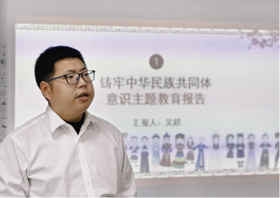 活动开始,吴超为大家做主题教育报告,讲解了铸牢中华民族共同体意识的内涵、重要性以及相关实践举措等方面的内容。