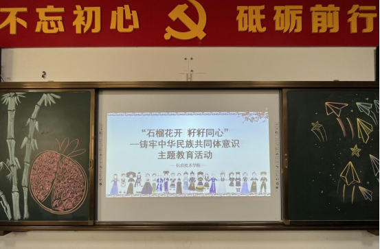 习近平总书记指出,铸牢中华民族共同体意识,各民族要像石榴籽一样紧紧抱在一起。为丰富校园文化生活,培养学生民族团结意识,增强民族自豪感,10月30日下午,信息技术学院举行“石榴花开,籽籽同心”—铸牢中华民族共同体意识主题教育,引导学院各族学生树立民族团结精神,用实际行动争做民族团结的“小小石榴籽”。学校党委委员、副校长傅强,学工处处长何峰,信息技术学院党总支负责人吴超,学管副院长陈露,学管秘书周楚阳和学院各族学生代表参与本次活动。活动由学管党支部书记刘雪莹主持。