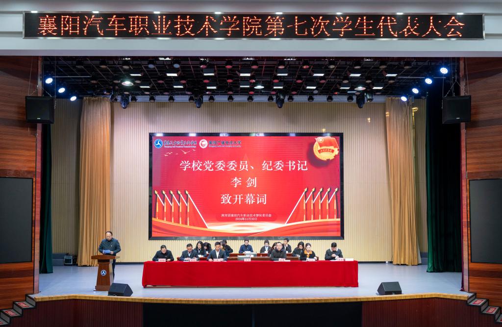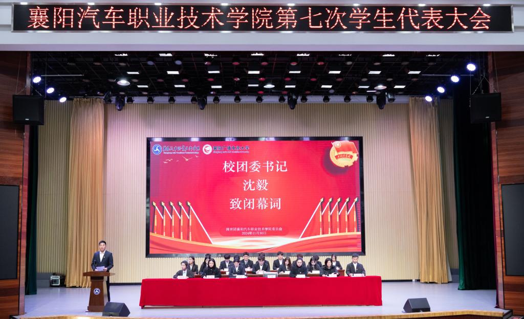 2024年11月30日,襄阳汽车职业技术学院第七次学生代表大会在科学会堂胜利召开。学校党委委员、纪委书记李剑,学工处处长何峰,团委书记沈毅,各二级学院党总支书记、学管副院长、团总支书记以及304位学生代表参加了本次大会。会议由校团委副书记姜敏主持。