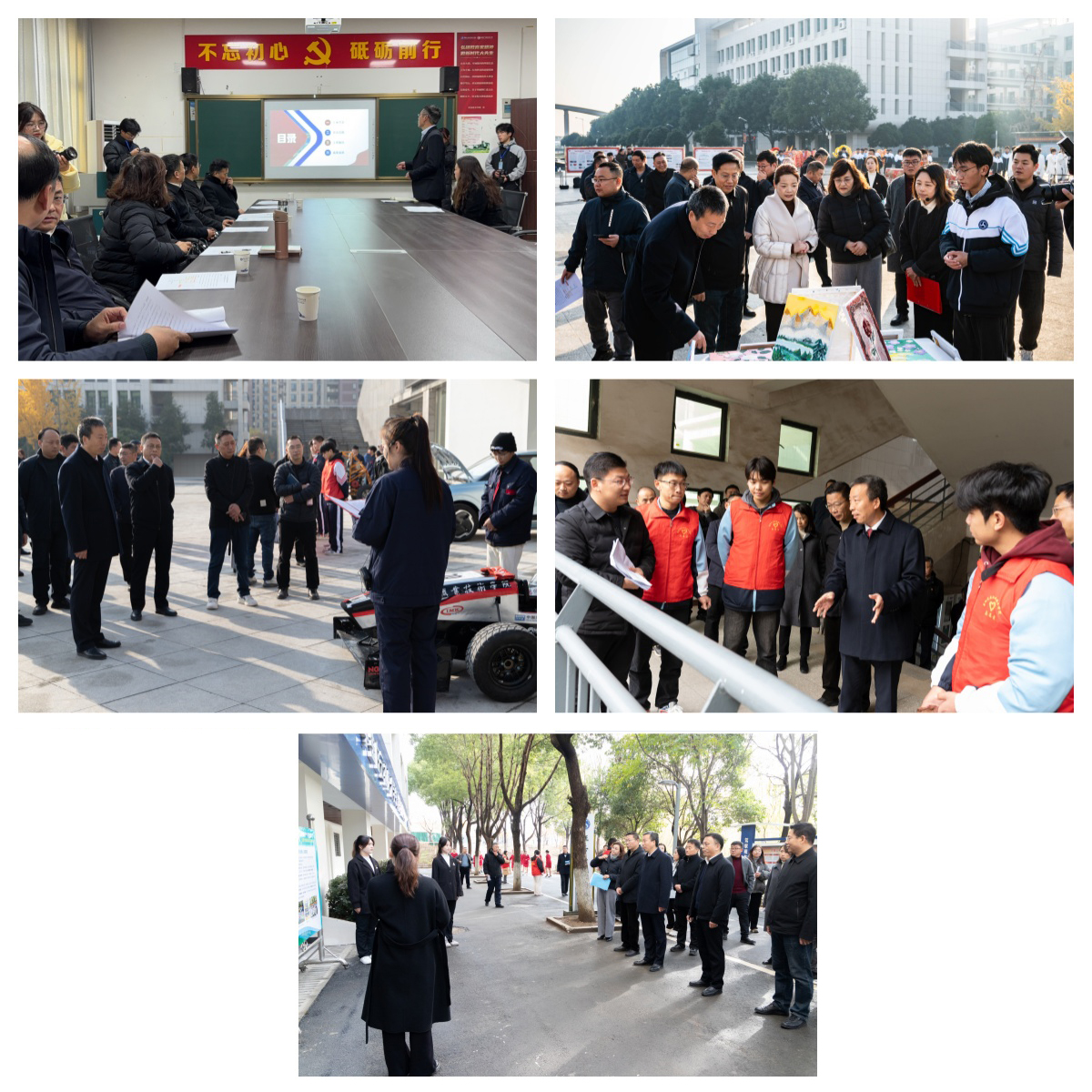 上午8时许,全体校领导,各职能部门负责人及教学单位党政负责人依次观摩了《从“心”出发构建“12345”融合育人体系》《“智”洁行芳——三大育人系统助推学生成长成才》《“一馆双节三队”汽车文化育人实践》《四色志愿服务“筑”力学生在实践锻炼中成长成才》《交襄辉映——思想铸魂,网育新人》五个德育成果项目展示。