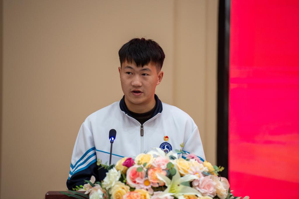 在校学生代表朱伟发言,他对各位校友们在祖国的大江南北建功立业的赤子之心表示感慨,也代表全体在校学生表达了勇于实践,敢于担当,努力成长为高素质工匠人才,以回报学校培育之恩的决心。