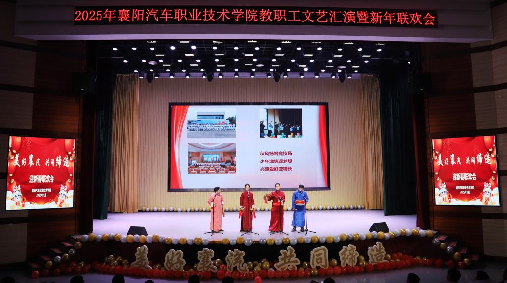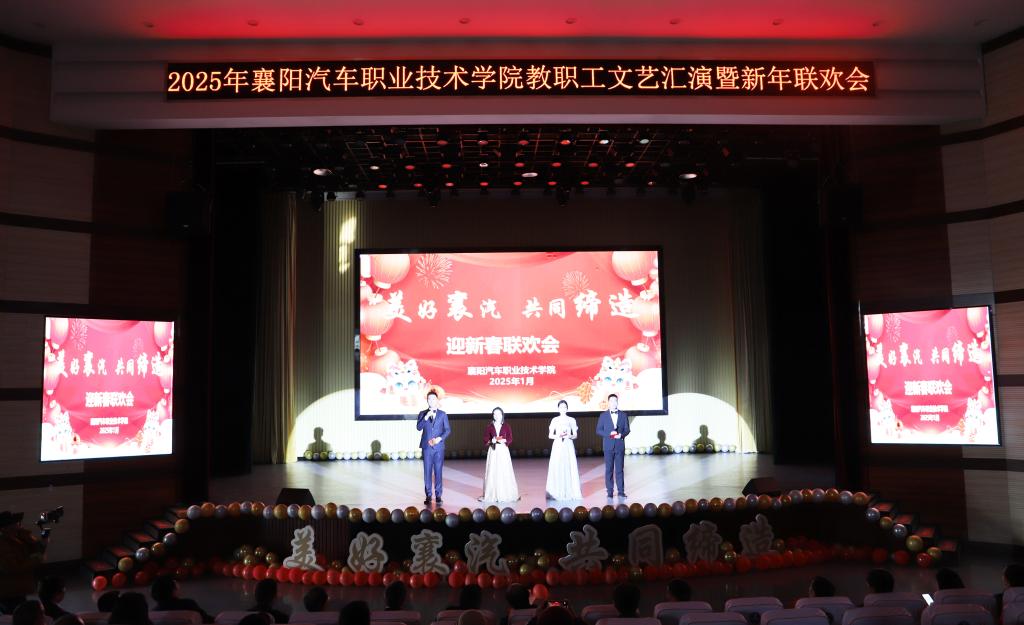 元春始风华,万象启新朝。1月17日下午,襄阳汽车职业技术学院2025年“美好襄汽共同缔造”教职工文艺汇演暨新年联欢会圆满举行。襄阳市襄城区副区长贾丰成、襄阳市科技局副局长乔拥军、襄阳市人社局四级调研员秦洪明、襄阳市发改委副县级干部樊启元、襄阳市财政局科教文科科长肖琼芳、襄阳市教育局四级调研员王怀波、团市委学少部部长严飞宇、襄阳市总工会经济部部长席勇、襄阳市自然资源和规划局办公室赵强、谷城职教中心副校长熊伟章、白云村书记徐朋,以及学校班子成员、教职工欢聚一堂,共话新年。