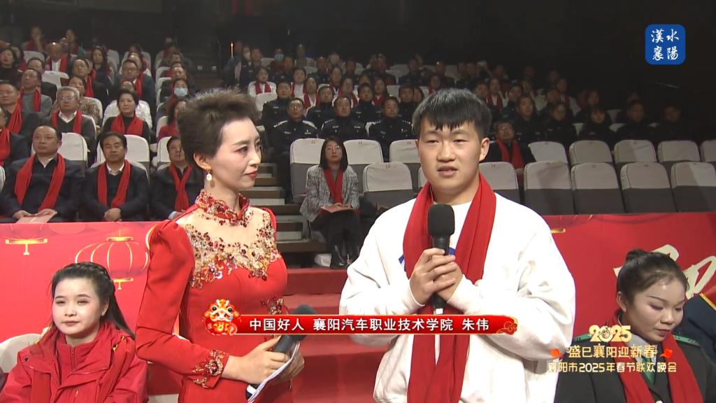 1月23日晚,“盛巳襄阳迎新春”2025年襄阳市春节联欢晚会在襄阳融媒体中心演播大厅隆重举行。我校学生、中国好人朱伟受邀出席此次盛会,与省市领导、各界代表及广大市民共赏精彩节目,共迎新春佳节。