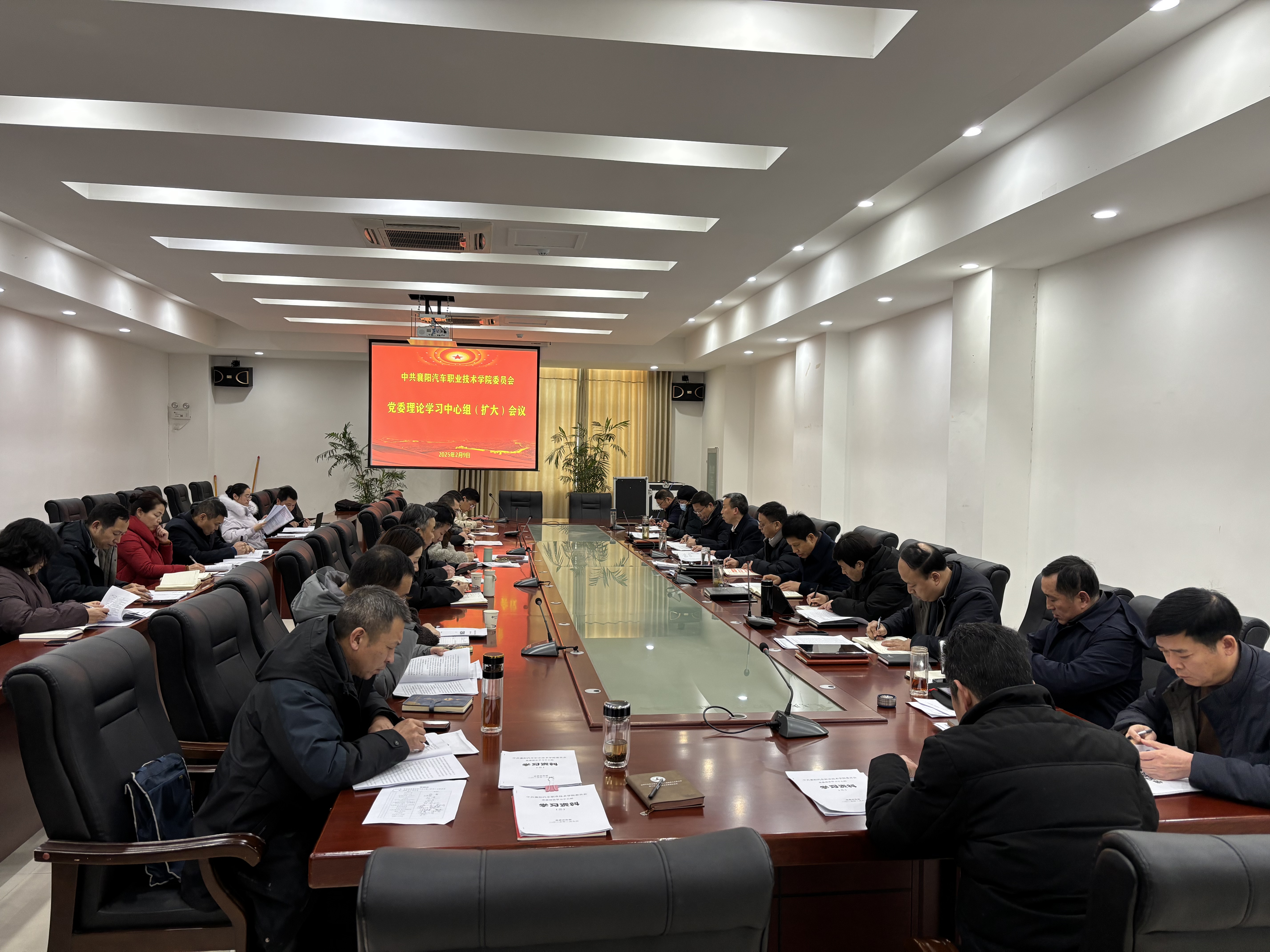2月9日,学校党委理论学习中心组举行2025年第2次(扩大)集体学习会议,深入学习贯彻习近平总书记在湖北考察重要讲话精神,深学细悟习近平总书记在全国教育大会的重要讲话精神、全省加快建成中部地区崛起重要战略支点推进大会等相关精神。进一步统一思想、深化认识,为学校高质量发展打牢思想基础,扎实推进学习教育常态化长效化。党委书记余荣宝主持会议,在家校领导、直属工业学校主要领导、党办、校办、宣传部、教务处、评建办、产学研工作处、学工处、开放教育工作部、各二级学院(部)主要负责人参加学习。