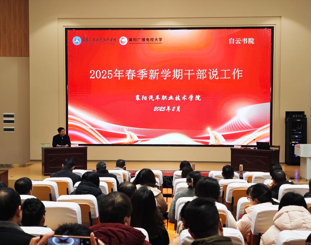 随后,程传红对“双高”建设、立项争资、“十五五”谋划、校庆举办、校园建设、拓展办学、学校提级升格等七项重中之重的工作进行了提醒和安排。他强调,为了高质量完成今年各项工作,全体干部要进一步提升四项能力:谋事干事能力、协同配合能力、开源节流能力和改革创新能力;进一步增强四种精神:“钉钉子”的敬业精神、“老黄牛”的实干精神、“硬肩膀”的担当精神和“紧螺丝”的攻坚精神。他指出,面对新的一年,机遇催人奋进,发展时不我待,全校上下要坚持干字当头,实字托底,务本务实,善干善成,共同开启襄汽充满希望和期待的2025!