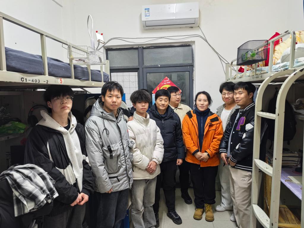 晚上9点,党委副书记,校长程传红、党委委员、副校长包科杰、纪委书记李剑一行走访寝室慰问学生。校领导深入学生寝室,与学生们亲切交流,询问他们的学习和生活情况,鼓励他们珍惜大学时光,努力学习,全面提升自己的综合素质。校领导的关怀和鼓励让学生们倍感温暖,也增强了他们在新学期中奋发向前的动力。