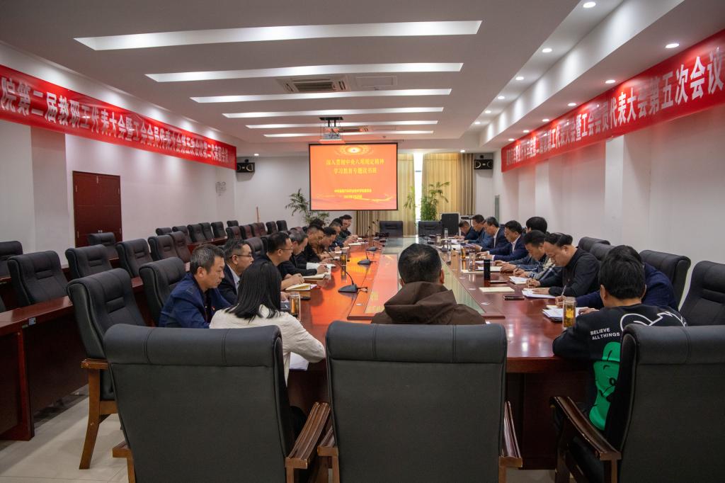 余荣宝指出,要在开展深入贯彻中央八项规定精神学习教育上下真功见实效。按照党中央部署,这次学习教育在全国两会后启动、7月底前基本结束,不分批次、不划阶段,融入日常、抓在经常。学校各级党组织要结合实际,一体推进学查改,确保学有质量、查有力度、改有成效。重点与基层组织建设、干部作风建设、清廉校园建设、文明校园创建等日常工作结合起来。在学习教育整改中检验、评测干部的工作作风、思想作风。在日常的工作中,检验干部的执行力、工作效果、工作绩效。他提出四点要求,一是要聚焦主题、注重实效。从一开始就要在“实”字上下功夫,每项措施都要体现“实”的要求,认真组织、精准发力,既要防止简单化、浮皮潦草,又要防止泛化、散光跑偏、变形走样,真正以小切口撬动大变化。二是要深化学习、增强自觉。要坚持个人自学与集中学习相结合,组织党员、干部深化学习,准确把握原文原理、深入领会精髓要义,深刻认识中央八项规定是管长远的铁规矩、硬杠杠,深刻认识深入贯彻中央八项规定精神的成效和经验,是党的作风建设必须倍加珍惜的宝贵财富,不断增强贯彻落实的思想自觉、政治自觉、行动自觉。三是要真查实改、标本兼治。要全面查摆问题,充分运用调查研究、纪检监察、督促检查等途径,全面深入查找自身在贯彻中央八项规定及其实施细则精神方面存在的问题,深挖问题根源,做到见人见事见思想,防止大而化之、不痛不痒。要加强警示教育,结合学校实际,开展以案说法、以案说纪、以案说法、以案说责,教育引导党员、干部举一反三、引以为戒。四是要依靠群众、开门教育。要发挥党员先锋模范作用,组织广大党员立足岗位,在推动高质量发展、提升治理能力、完成急难险重任务中担当作为、服务师生,让师生感受到转作风树新风带来的新气象新变化。
