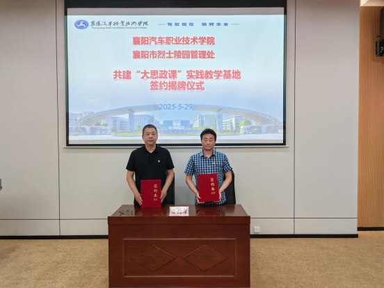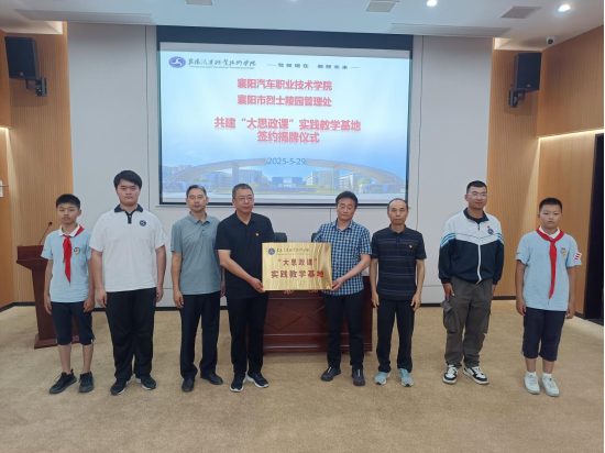 签约揭牌仪式上,襄阳汽车职业技术学院党委委员、副校长包科杰指出:“将思政课堂‘搬’进红色场馆,是推动理论教育与实践体验深度融合的创新之举,让革命文物成为‘活教材’,让历史场景转化为‘实境课堂’。”襄阳市烈士陵园党支部委员、副主任吴拥军表示,将以此次合作为契机,挖掘红色资源育人价值,打造具有襄阳特色的思政教育品牌。