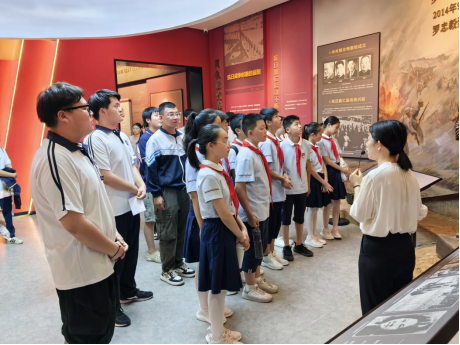 誓言声响彻纪念馆大厅,不同学段的师生以赤诚之心致敬先烈,立下“传承红色基因”的青春誓言。仪式后,队伍有序进入多功能影视厅,开启沉浸式红色教育环节。