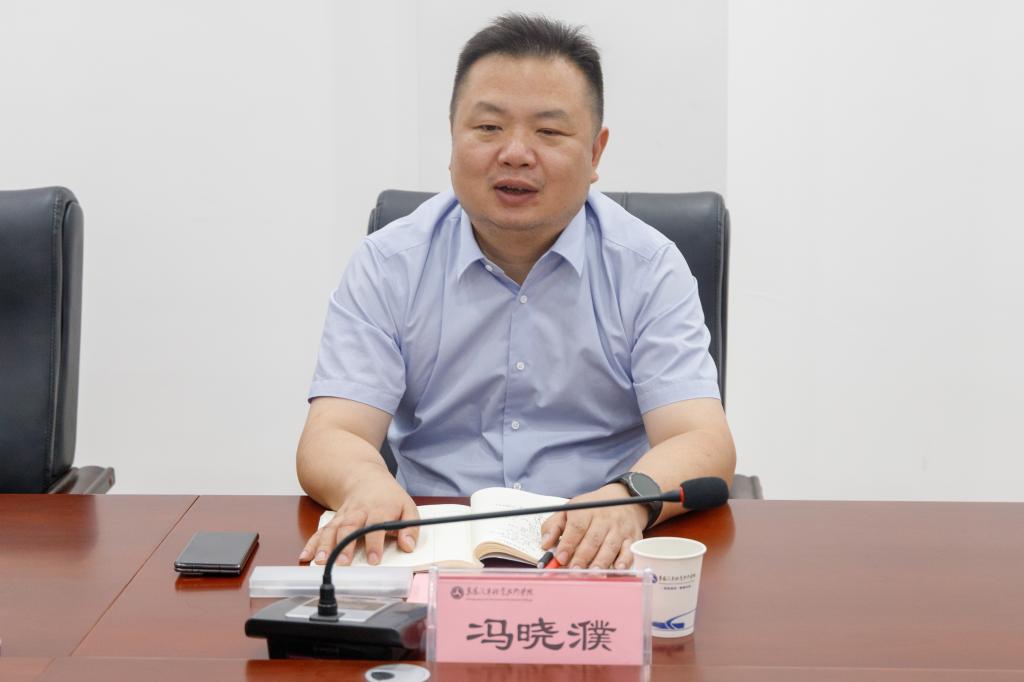 冯晓濮书记对学校取得的成绩表示充分肯定,特别对我校在职业教育、开放教育、继续教育(社区教育)融通融合及精准服务县域经济等方面所做的创新上给予高度评价。他对我校专业建设紧贴襄阳产业、人才培养服务地方经济提出更高要求。他表示,期望以此次调研为契机,在校政企合作交流平台对接、中小企业数字化改造项目实施参与等方面作出成绩,助力更多中小企业完成数字化改造,助力产业高质量发展。