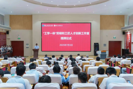 7月3日上午,襄阳汽车职业技术学院在思政报告厅隆重举行“工学一体”劳模和工匠人才创新工作室授牌仪式。襄阳市总工会领导、学校党政班子成员、相关职能部门负责人、企业劳模工匠代表及师生代表共同出席,见证这一深化产教融合的重要时刻。仪式由就创中心主任蒋帆主持。