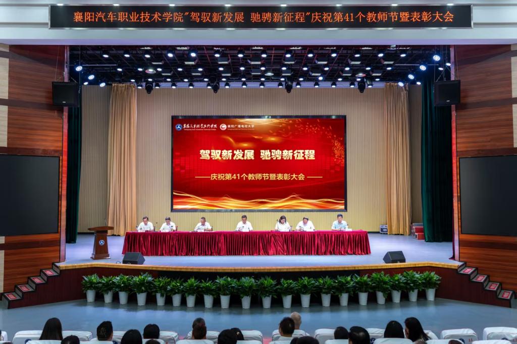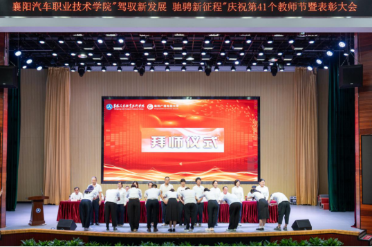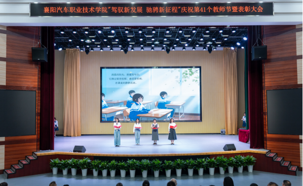 党委书记程传红在表彰大会上讲话。他代表学校向辛勤耕耘在教学、科研、管理、服务一线的全体教职员工,致以节日的祝福和崇高敬意,向为学校建设发展作出贡献的离退休老同志,致以诚挚的问候和美好的祝福,向受到表彰的先进集体和个人表示热烈的祝贺,向刚刚加入我们大家庭的新同事们,表示热烈的欢迎。他表示,在全体教职工的共同努力下,学校办学声誉和影响力有了大幅提升,学校已经成为襄阳都市圈高质量发展不可替代的重要人才和技能支撑。这些成绩的取得,得益于筚路蓝缕、栉风沐雨的创业前辈,得益于为学至勤、传道授业的广大教师,得益于自强不息、追求卓越的每一位襄汽人。他指出,教育大计,教师为本。教师队伍建设是学校改革发展的永恒主题,是实现高质量发展的关键要素。他围绕“驾驭新发展 驰骋新征程”主题提出三点要求。一是以教育家精神“铸魂”,做青年成长的有力引导者。广大教师只有坚守精神家园,秉持勤学笃行、求是创新的躬耕态度,牢固树立终身学习理念,才能站好讲台、甘当人梯,以高尚的道德情操影响学生,引领学生在探求真理、追寻新知中实现全面发展。二是以教育家精神“强基”,做技术技能人才的精心培育者。全体教职工不仅要具备高尚的道德修养,还要有过硬的专业能力。要以教育家精神为引领,注重将“育人智慧”和“教学创新”结合,及时掌握行业前沿动态,并将新方法、新技术、新工艺、新标准融入教学实践,培养适应社会发展的高素质技术技能人才。以人格魅力、学识魅力、职业魅力教育和感染学生,做学生职业生涯发展的培育者。三是以教育家精神“赋能”,做区域经济社会发展的主动服务者。全体教师要围绕区域经济发展重点和产业转型升级需求,积极开展应用技术研究、技术服务和技能培训,让学校成为区域经济发展的“人才库”和“创新源”。他强调,教师使命光荣而伟大,教育事业任重而道远,希望大家坚守初心,做潜心育人的好老师;坚守师德,做立德树人的灵魂工程师,坚守仁爱,做心怀大爱的成长引路人,共同把学校办出特色、办出水平、办出影响,办出品牌,为学校高质量发展争光添彩,为打造中西部发展的区域性中心城市提供强有力的人才保障和智力支撑。