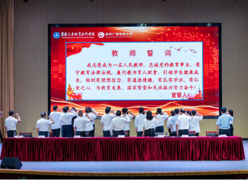 新入职教师庄严宣誓,郑重承诺为学生的全面发展贡献智慧与力量,为党和人民的教育事业而努力奋斗,全校教师也再一次接受宣誓教育,表达了潜心治学、倾心教育、践行教育家精神的决心。副校长王晓红同志宣布教师结对帮扶名单,青年教师向导师行拜师礼,递交拜师帖。董钦磊代表新教师表态要以满腔的热忱和全部智慧,致力于襄汽发展,贡献自己的青春力量。
