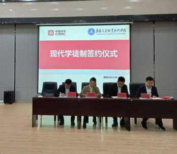 首先进行了签约仪式,孙院长和朱部长共同签订《襄阳中车电机技术有限公司现代学徒制培养实习协议》。