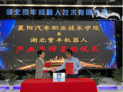 智能制造学院院长孙莉代表学校与湖北贽丰机器人技术有限公司董事长王洪荣签约产业导师合同,此次开展现代产业导师签约,将进一步深化产业对学校人才培养工作的宏观指导,推动课程建设、人才培养、校企合作等标准不断更新和升级,形成产教深度融合、政行企校互动、多方协同育人的职业教育高质量发展新格局。