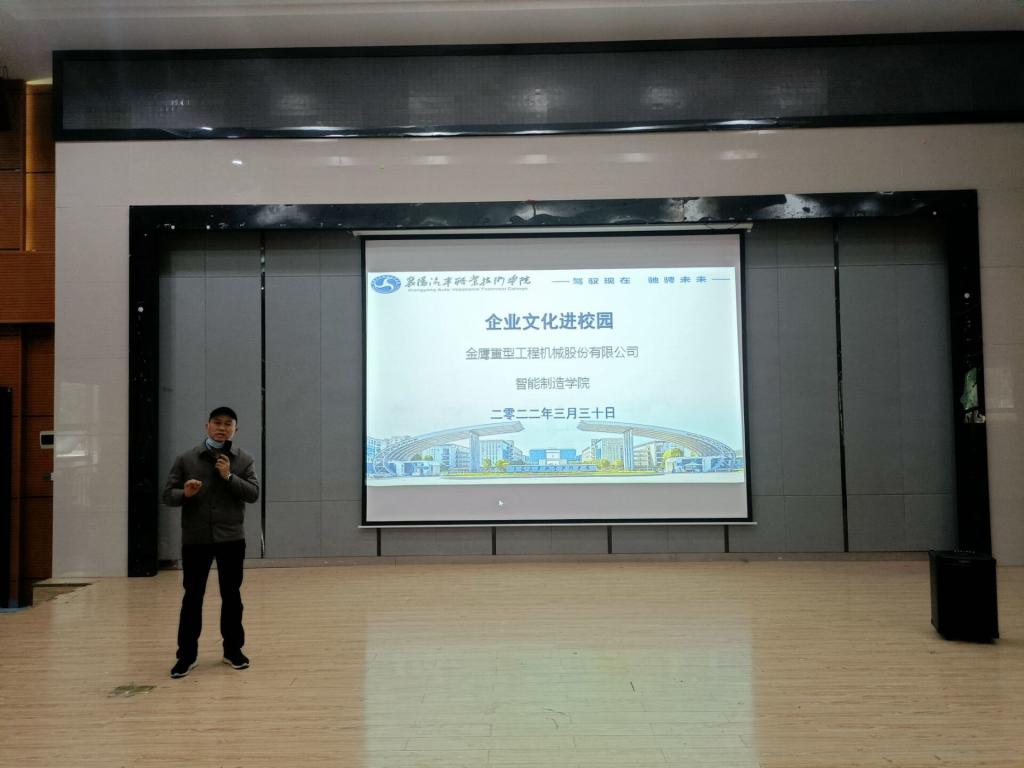 3月30日,智能制造学院邀请金鹰重型工程机械股份有限公司人力资源部部长为我院师生做金鹰重工进校院专题讲座。出席本次活动的有金鹰重工人力资源部部长刘进建、司红斌、智能制造学院副院长马春亮及相关师生。
