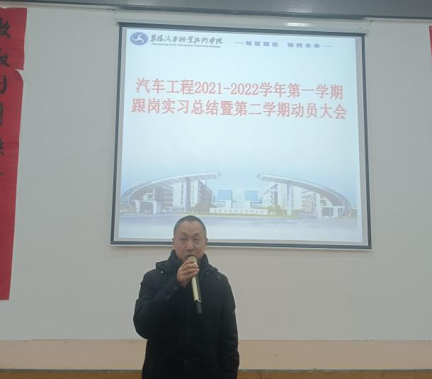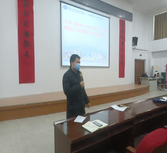 为进一步做好学生跟岗实习工作,引导学生认识跟岗实习的重要性,推进学生实习实践工作的开展。12月31日上午,在阶梯教室开展了“汽车工程学院2021-2022学年第一学期跟岗实习总结暨第二学期跟岗实习动员大会”。汽车工程学院院长王勇、副院长江伟出席了会议,会议由学院副院长雷永强主持。