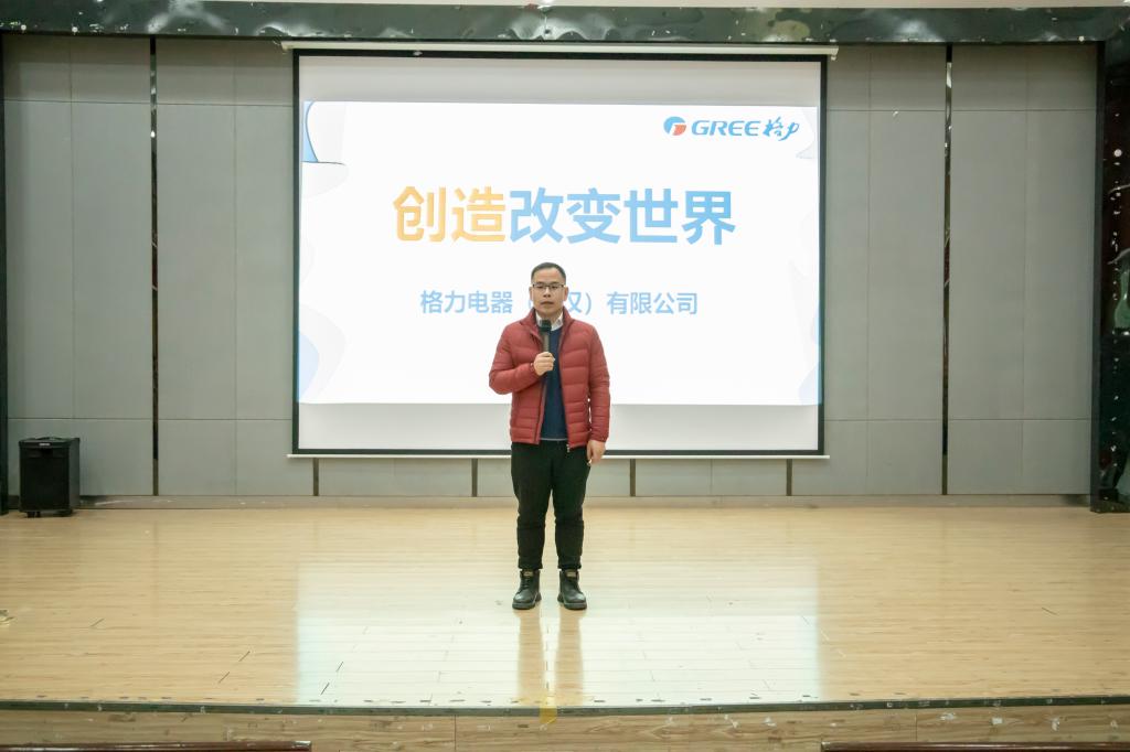 格力电器主管梅怀超从一个民营企业发展成国家自主品牌的历程,奋斗中的艰辛,身为民族品牌的自豪,以及未来的发展趋势等方面,讲述了身为格力人的信念和担当。随后,又从格力的团队、凝聚力、共同目标、互助信任等方面进行分享。他希望同学们怀揣梦想,干一行、爱一行、精一行,在以后的学习工作中发扬团队精神,加强沟通能力,创造自我、找到自我,实现人生价值。