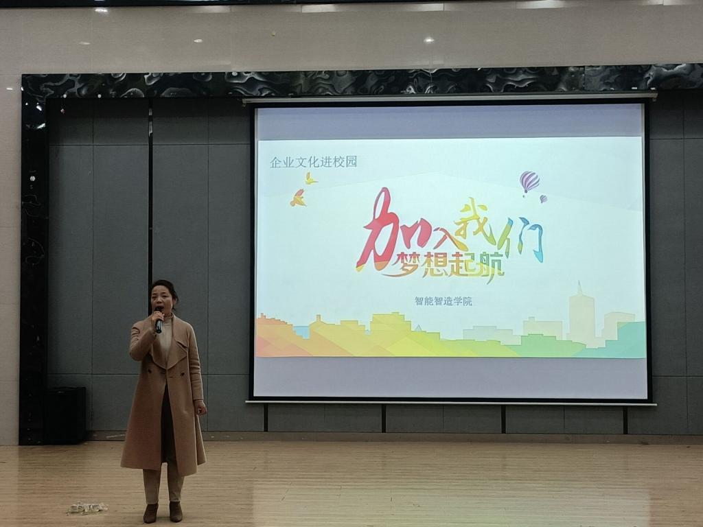 本次活动由智能制造学院孙莉院长主持,孙院长代表学院向各位来宾表示欢迎和感谢,并为师生介绍了企业文化进校园的重要意义。