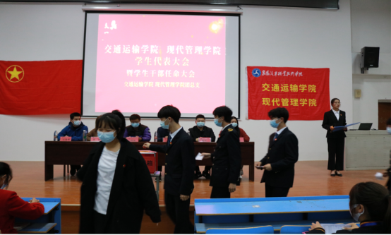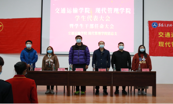 11月10日晚,交通运输学院现代管理学院第二次学生代表大会在6号楼三楼阶梯教室召开。校团委副书记方舒扬,交管学院党总支书记张劲,副院长李慧,团总支书记刘豫樊,学管支部书记陶玮、学管办教师任悦出席会议。