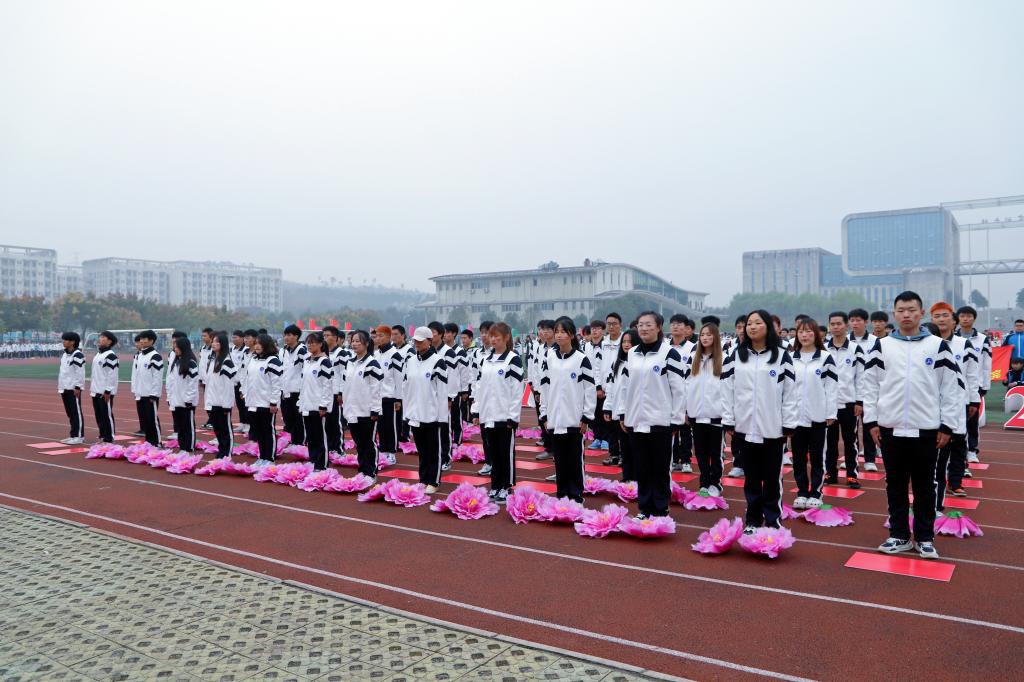 彩旗在晨风中飘扬,激昂的音乐在绿茵场上回荡,伴随着《运动员进行曲》的奏响,国旗队护送着鲜艳的五星红旗缓缓入场,校旗队、彩旗队、教师裁判员方阵、入党积极分子方阵、各专业运动员方队紧随其后依次入场,接受主席台的检阅。