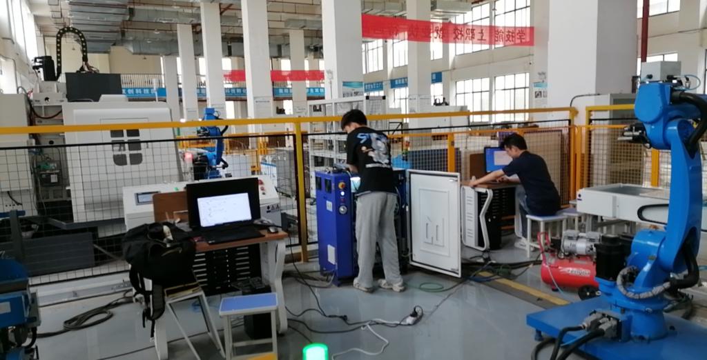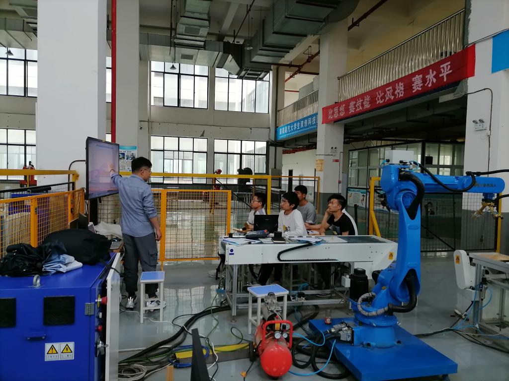 6月19日和20日,华数机器人资深工程师彭工有丰富的设备调试、维修经验,为师生进行机器人设备的结构、原理的讲解,并带领师生一起进行设备修复,使故障一年多的设备获得重生。6月25和26日华数机器人公司的雷工以多年的大赛设备编程调试经验为师生们上了一堂生动的工业机器人编程与调试理实一体化课程,教学生动,目标定位准确,课堂效果生动活波,有效地促进了师生对机器人编程与调试技术技能的提升。