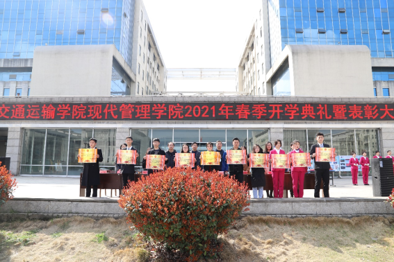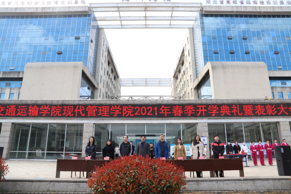 新的学期,开启新的希望,承载新的梦想,2021年3月11日交通运输现代管理学院全体师生齐聚红旗广场,隆重举行“交通运输学院现代管理学院2021春季开学典礼暨表彰大会”。大会由我院副院长李慧主持,襄阳汽车职业技术学院副院长管用才、我院院长张显辉、党总支书记张劲、副院长何红霞、蒋珊、中航国铁负责人李娜出席典礼。
