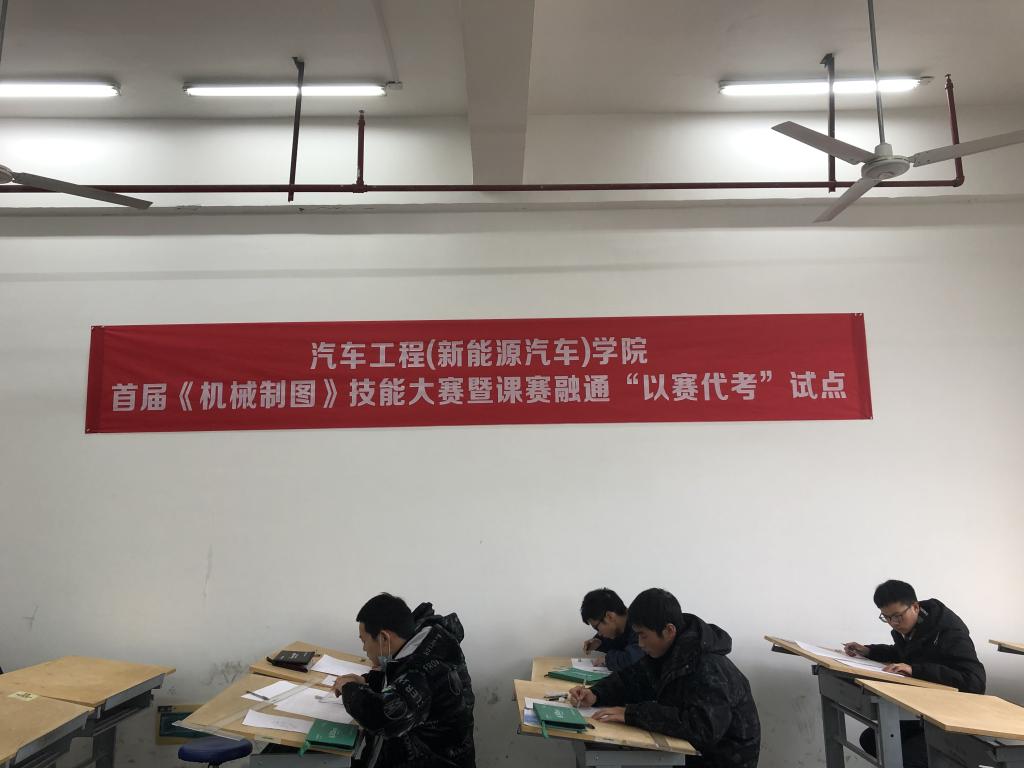 12月26日下午,汽车工程(新能源汽车)学院在实训楼A区机械制图实训室成功举办了首届《机械制图》以赛代考试点考试。参加此次大赛的学生共有百余人,大多都是20级汽车专业学生。
