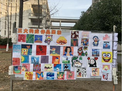 为了丰富同学们的课余文化生活,展示信息学子的风采,全面提高我院学生的综合素质,进一步营造积极向上的学习氛围,推动我院校园文化建设和专业教学建设再上新台阶。在2020年12月24日,信息技术学院在学院一楼大厅举办为了“三大构成作品展”。