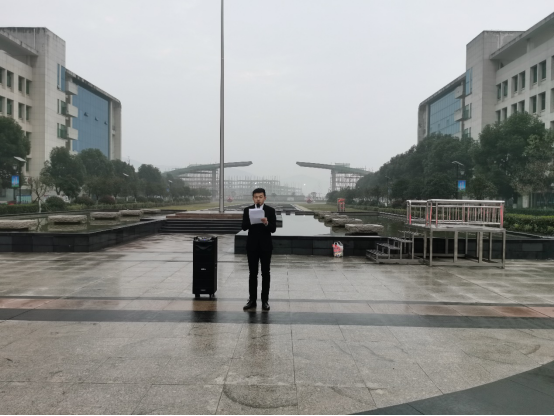 本次由学生代表郑京同学做国旗下的主题演讲,他号召同学们积极学习,感恩老师、热爱祖国,为实现伟大中国梦不断努力。