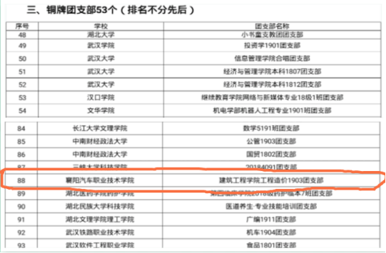 为持续深入推进学习贯彻习近平新时代中国特色社会主义思想“进支部、进社团、进网络、进团课”,今年3月,由共青团湖北省委、湖北省学联会在全省高校团学组织中部署开展2020年度“百生讲坛”系列活动。历经校院班层层选拔推广,今年10月,全省96所高校408名主讲人、358个团支部推荐参加省级遴选,历经材料审核、五大赛区省级预赛、省级复赛暨示范巡讲活动。我院工程造价1903团支部在省级复赛暨示范巡讲活动中获得省级比赛铜牌。