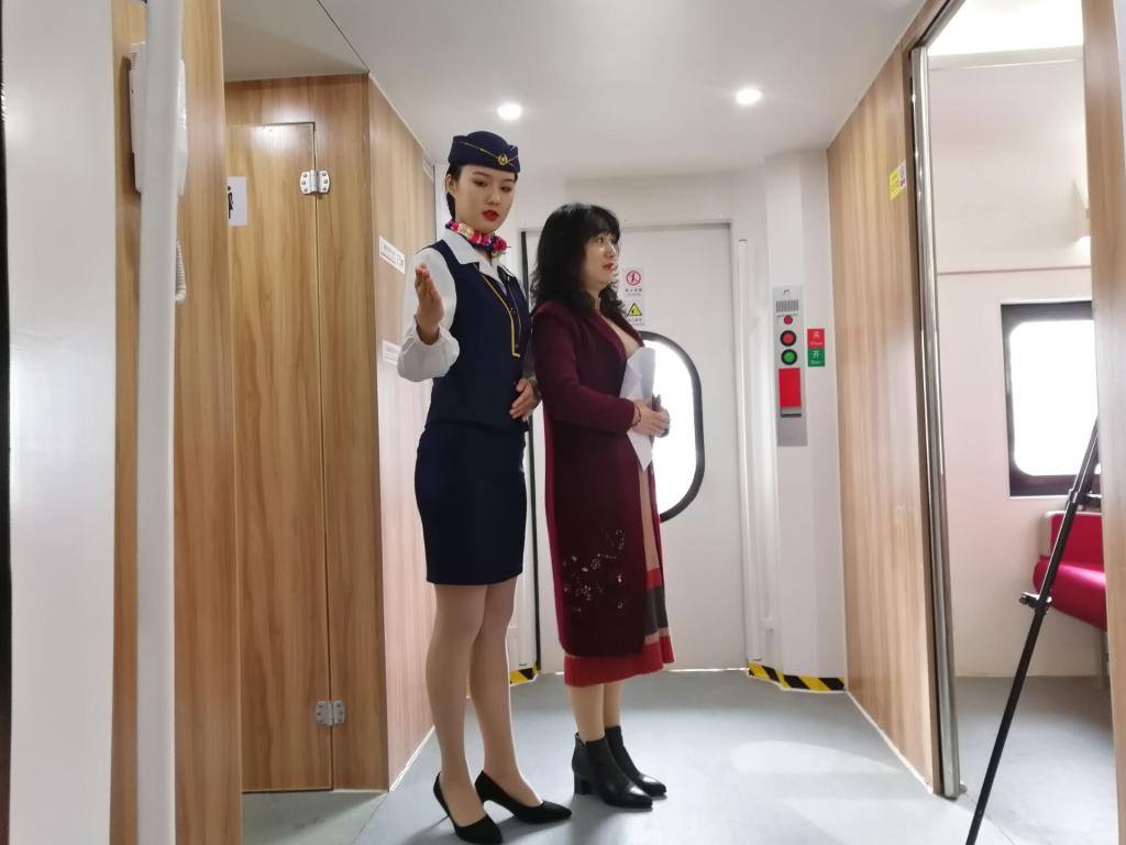 为提升空乘、高铁专业教学能力,建设高水平专业群,11月21日我院专业老师与襄阳职业技术学院空乘、高铁专业教师陈曦,在交通运输实训中心进行一天的课程交流。我院教学副院长何红霞、实训室主任郭明璐、空乘与高铁教研室专业教师及学生代表参加交流活动。