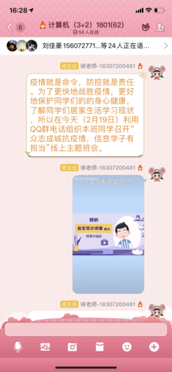疫情就是命令,防控就是责任。为了更快地战胜疫情,更好地保护学生的身心健康,了解居家生活学习现状,信息技术学院于2月19日组织全院41个班级1780名同学以班级为单位召开“众志成城抗疫情,信息学子有担当”线上主题班会。