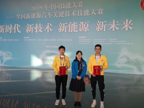 12月8日,由汽车应用学院院长王勇带队的新能源汽车技术专业学生陈希和伍人坚团队参加了国家人力资源和社会保障部、中国机械工业联合会在深圳坪山共同举办的“2019年中国技能大赛——全国新能源汽车关键技术技能大赛决赛”,喜获“新能源汽车智能化技术”赛项学生组全国二等奖。